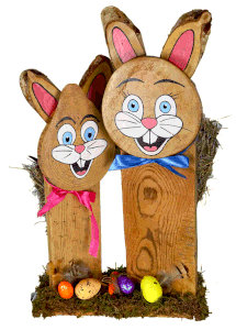 Osterhasen mit Baumscheiben und Holzlatten, 2025