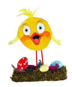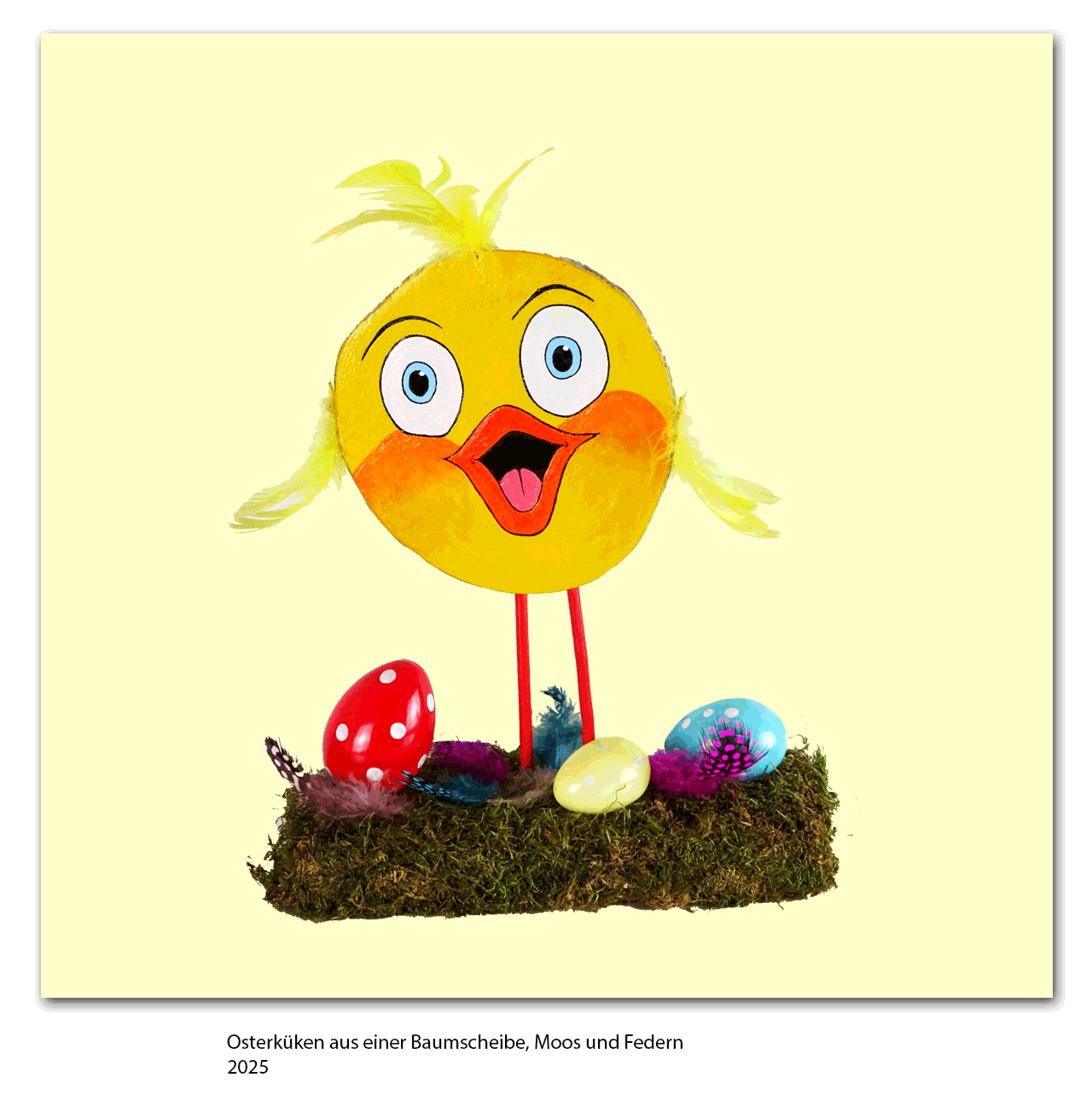 Osterküken aus einer Baumscheibe, Moos und Federn, 2025