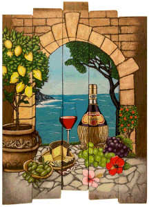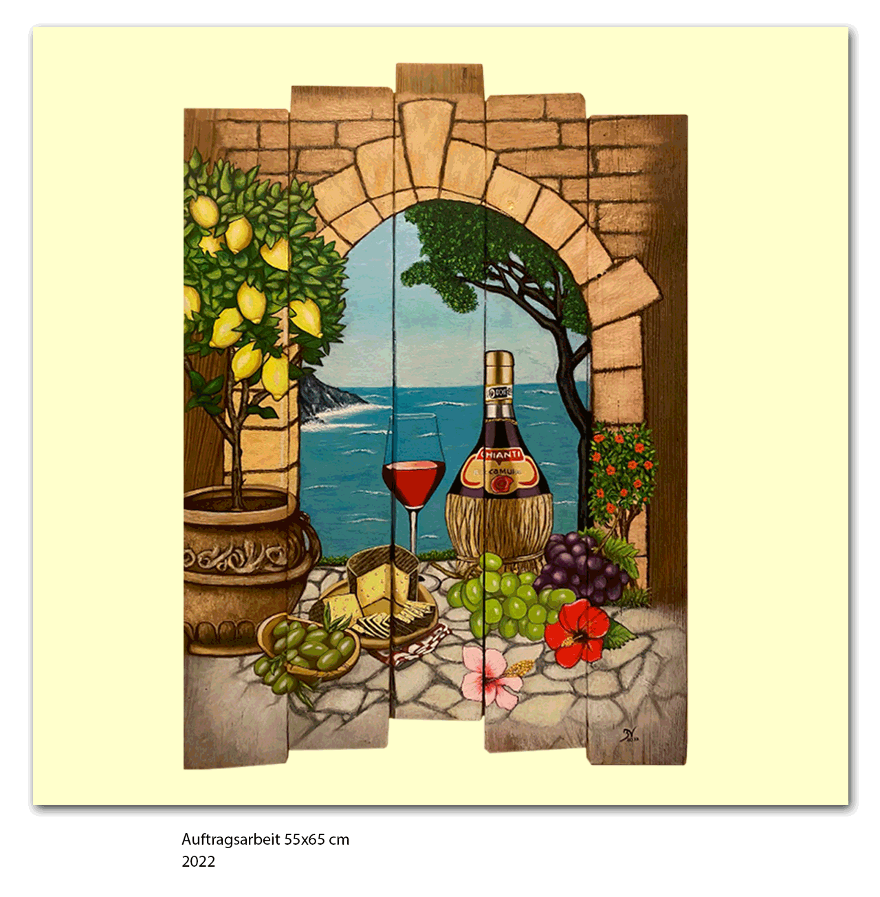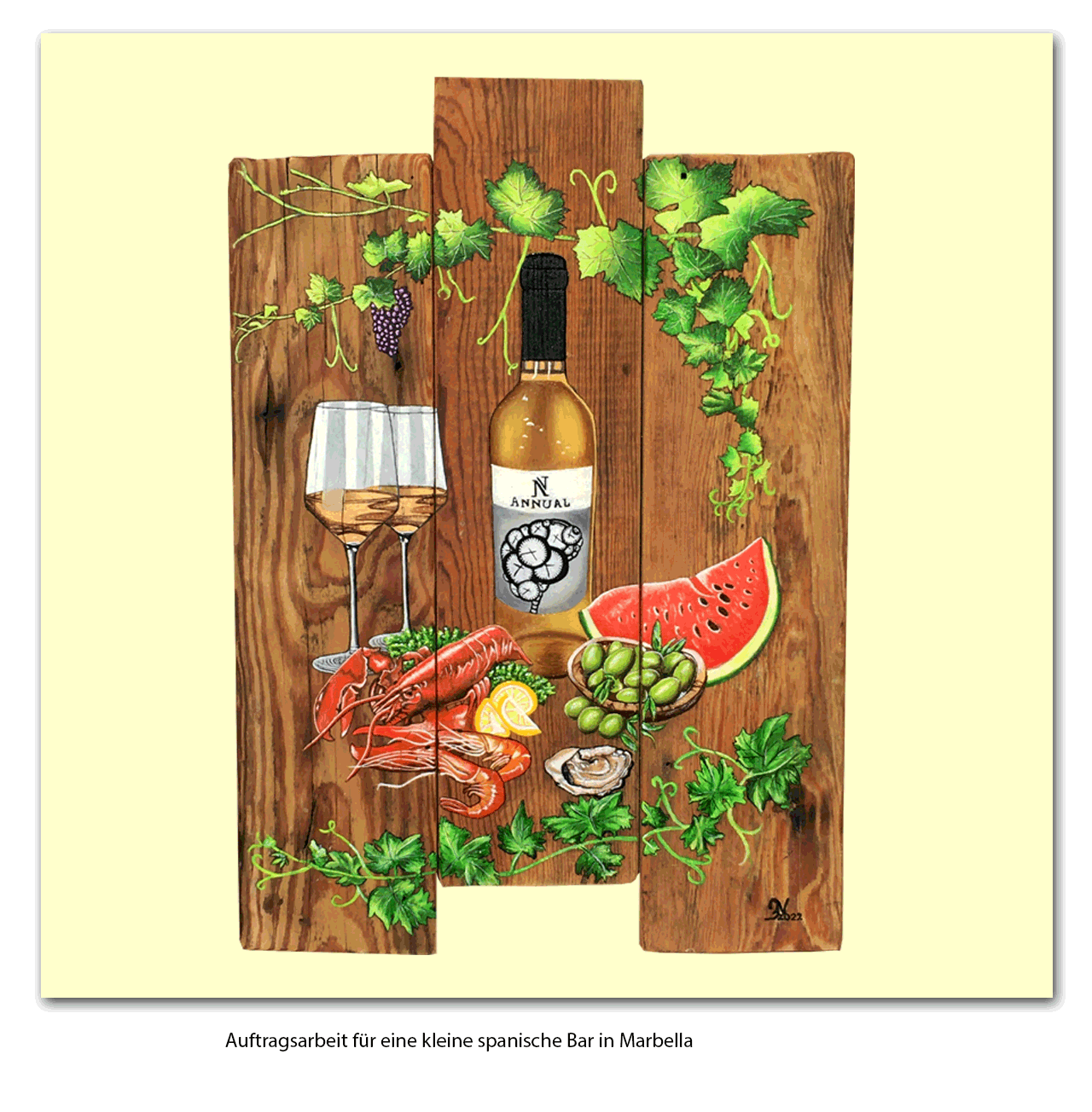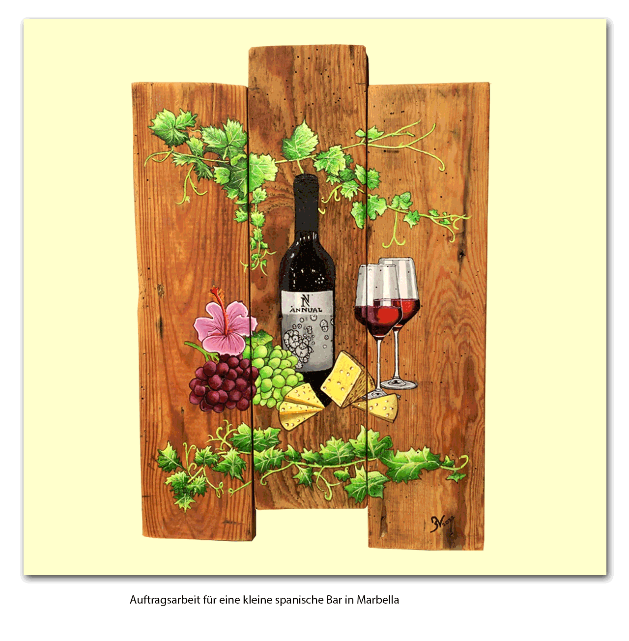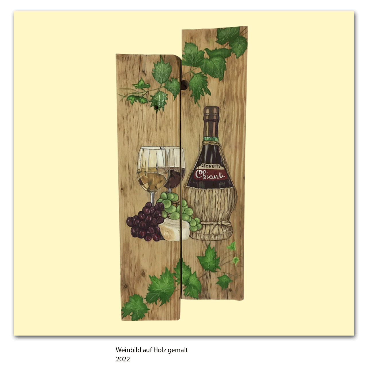 Weinbild auf Holz gemalt, 2022